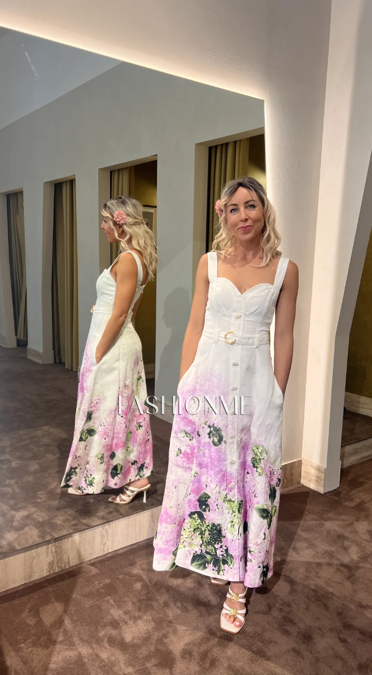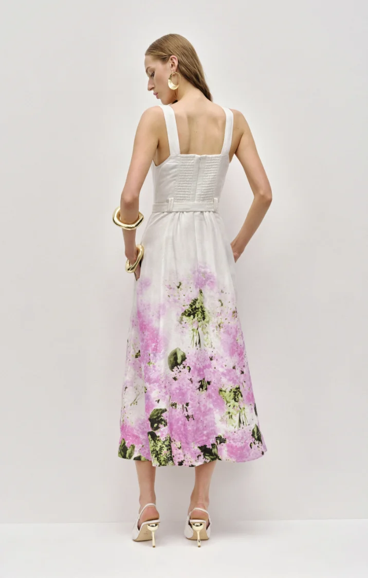 The AJE Ertha Midi Dress is cut in a linen-viscose blend with an A-line silhouette. Designed with a sweetheart neckline and feature front button placket, it includes a detachable self-tie belt with a sculptural buckle for adjustable styling. Finished with a secure zip and hook-and-eye closure, this lined midi dress delivers structured wearability and elegance.